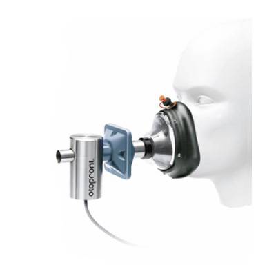 Para medir el flujo nasal se emplea una mascarilla. El filtro situado entre la boquilla de medición y la máscara es reemplazable. Para medir la presión coanal se emplea un adaptador nasal adhesivo. Además, los microsensores de presión pueden conectarse directamente a la mascarilla y reducir así los errores de medición.