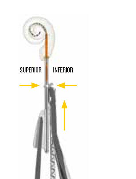 Nota: el ala de la funda debe estar orientada hacia la parte superior, es decir, hacia el modiolo.