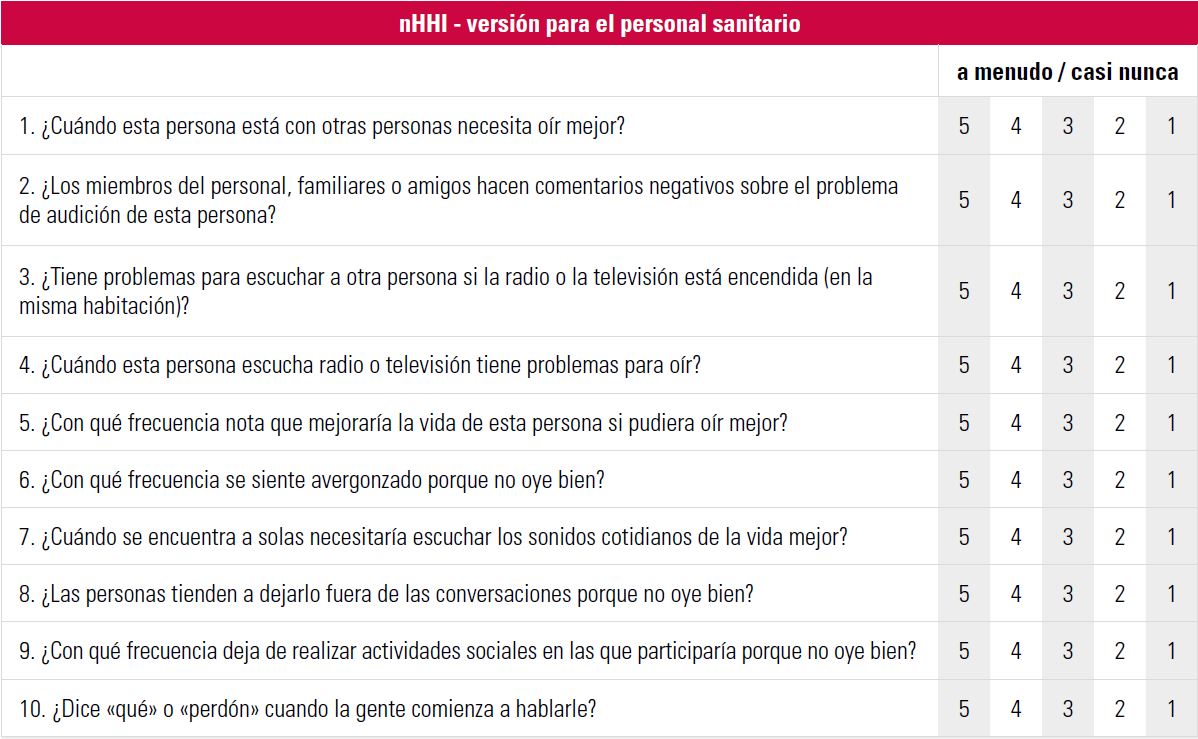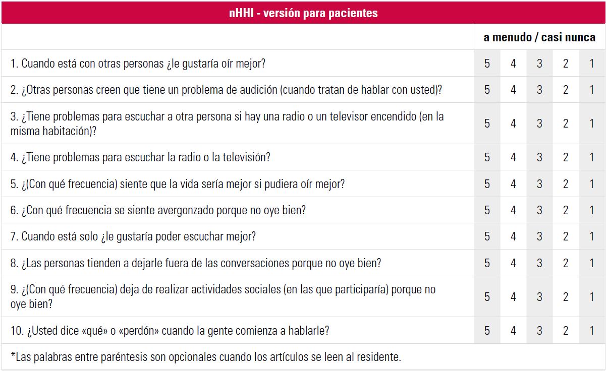 - Schow, R.L; Nerbonne, M.A. «Assessment of hearing handicap by nursing home residents and staff». Journal of Academy of Rehabilitative Audiology. 1977, 10 (2). Págs. 2–12.
