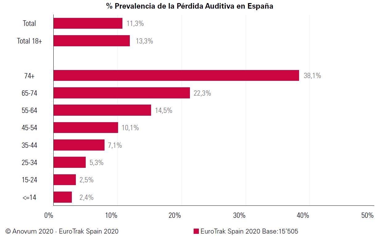 Prevalencia de la Pérdida Auditiva en España (fuente: Eurotrak 2020 SP ANA)