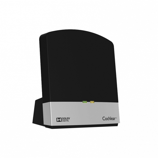 Cochlear Wireless TV Streamer transmite sonido estéreo directamente desde la televisión, el equipo de música o el ordenador al procesador de sonido.
